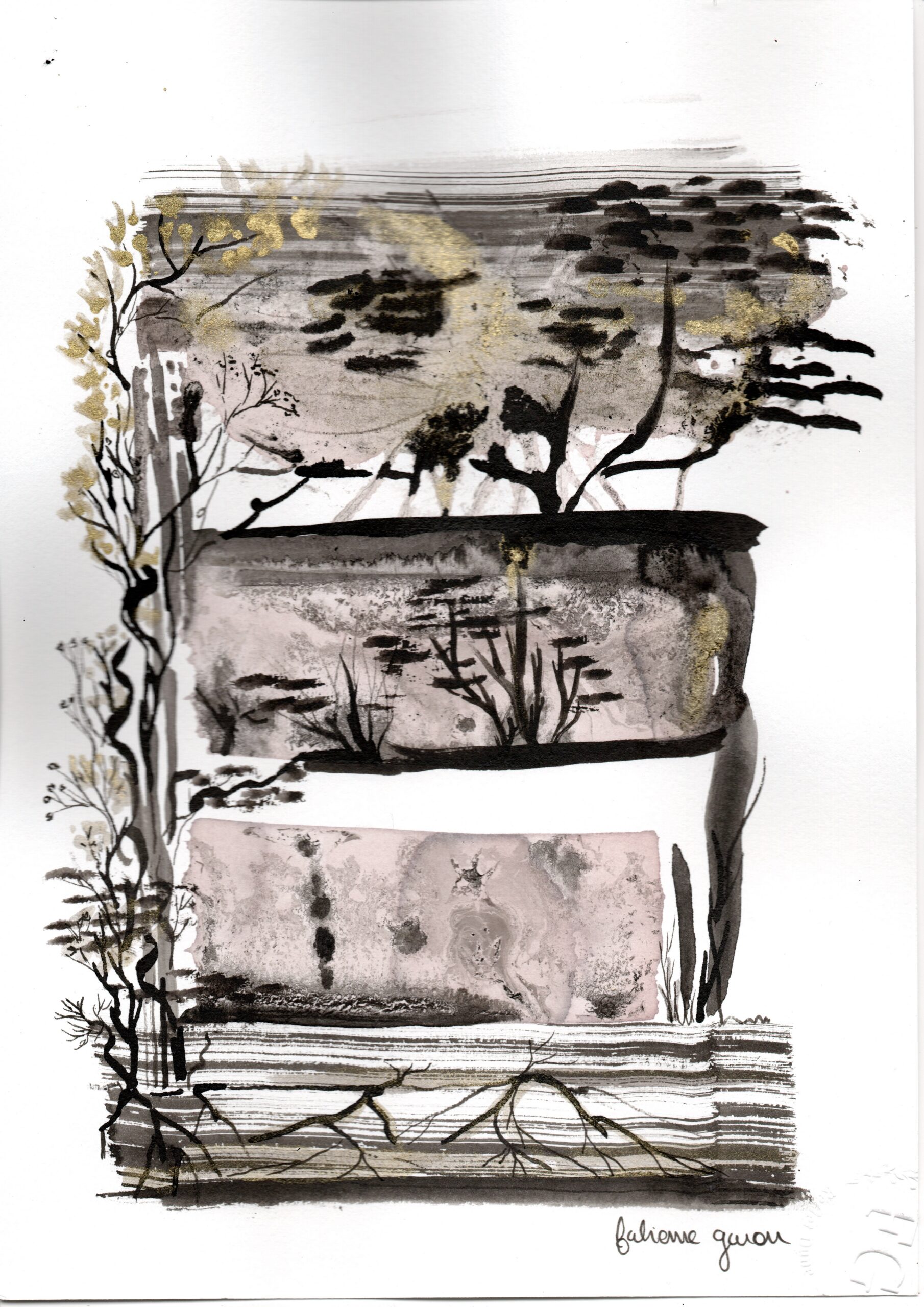 Aquarelle Encre de Chine et Peinture au vin