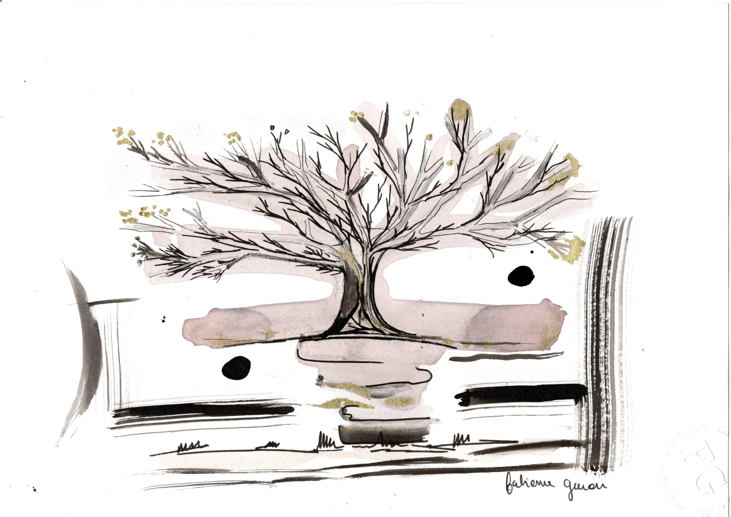 Aquarelle Encre de Chine et Peinture au vin